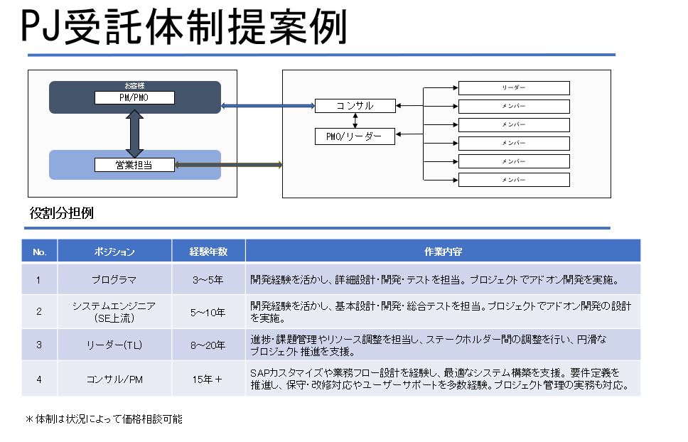 SAP開発のプロジェクトに10-80人チーム提案可能